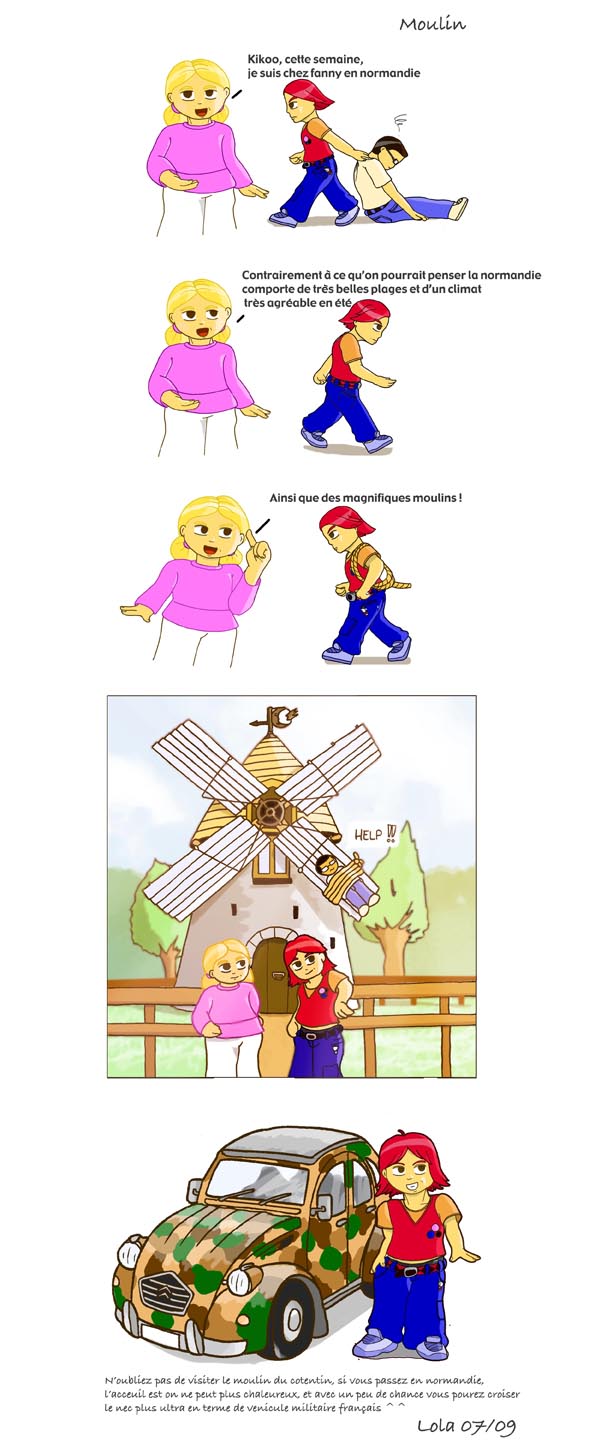 Bon finalement ca a ete un peu plus difficile que prevu, mais bon je promets de me rattraper assez rapidement, meme si mon voyage prochain en Italie risque de compromettre des choses, bon sinon je fais la pub du moulin du contentin ils ont bien voulu me supporter durant ces 2 dernieres semaines :p